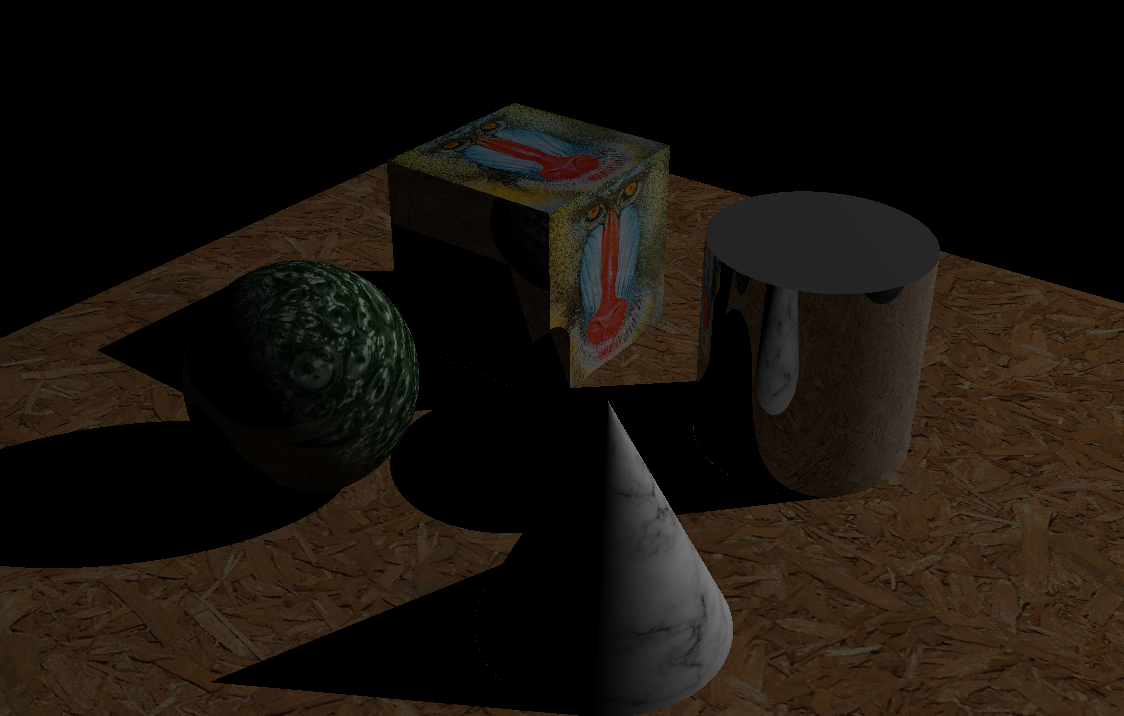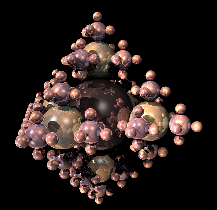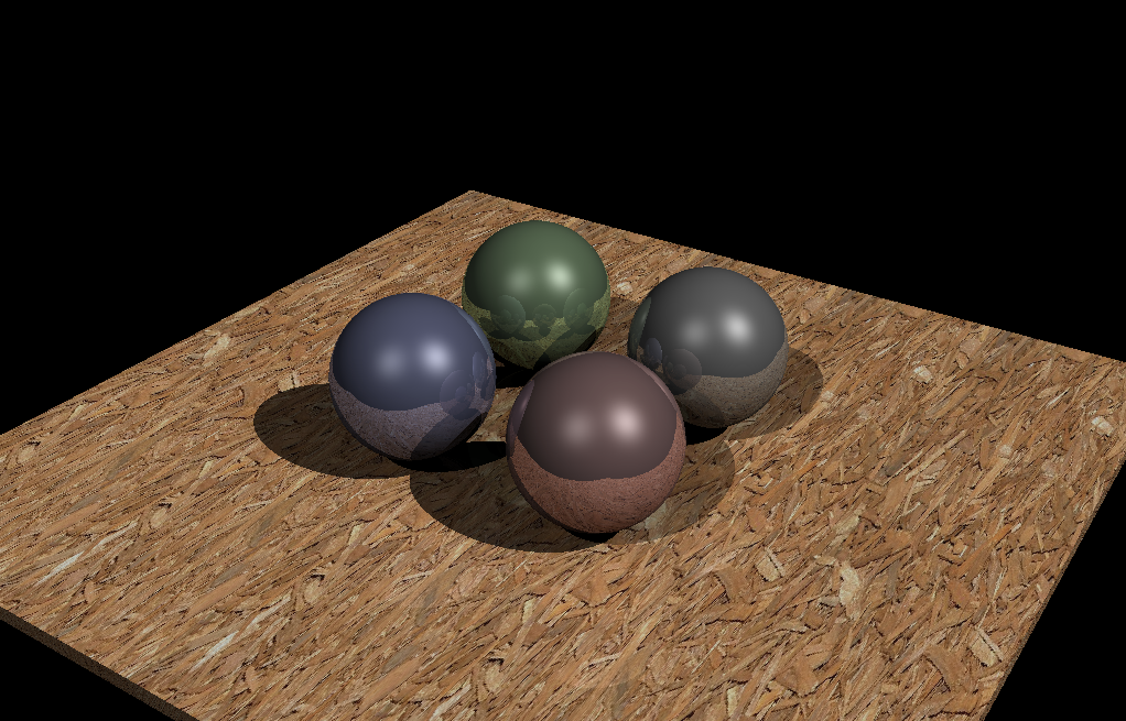 In my Introduction to Computer Graphics class, we wrote our own raytracers in C++. The program uses the implicit equation of basic primitives (spheres, cones, pyramids, and cubes) to calculate intersections with rays. My implementation is multithreaded, and supports shadows, texture mapping, reflections, and both directional and point lights. Below are some final output images: