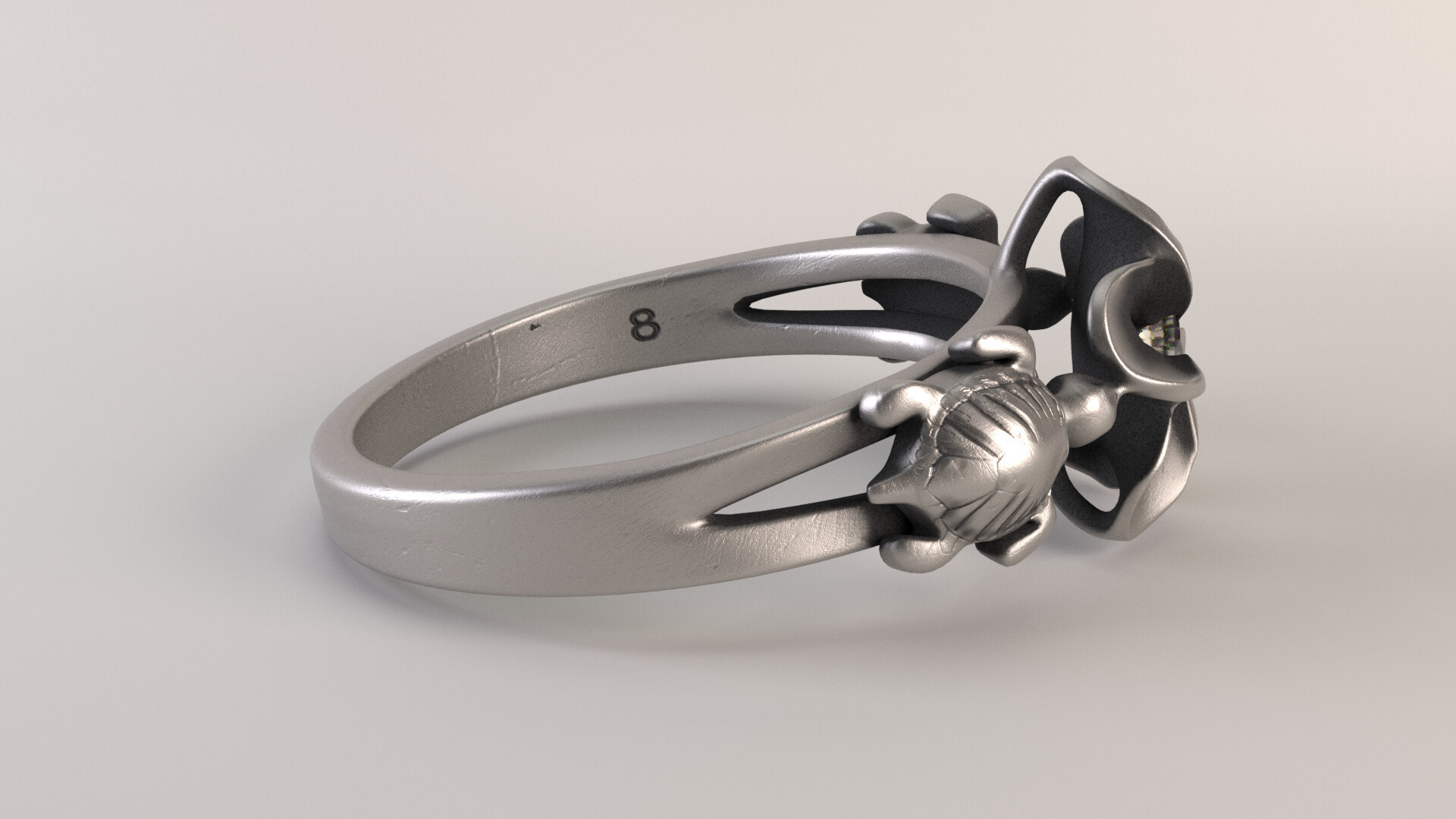 I created this 3D model of my favorite ring to focus on inorganic modeling and texturing skills. I wanted to challenge myself with the intricate shape of the flower and force myself to really study and look at a real life object in order to recreate it. I found it super helpful to be able to reference a physical object to be able to add convincing wear and tear. It was important to be able to see how the light hit the surface in different ways.